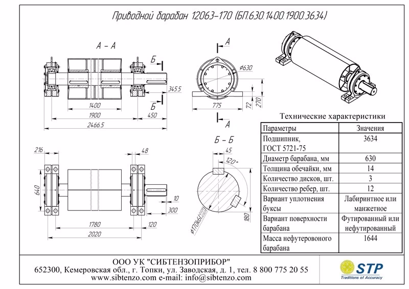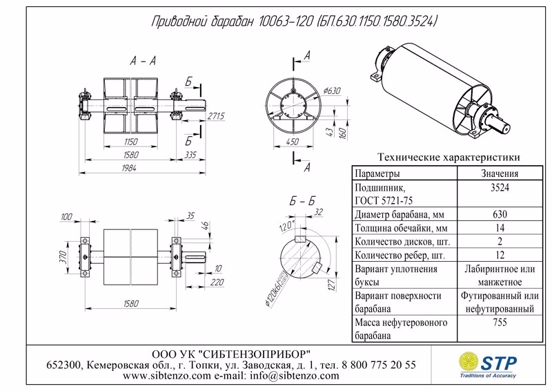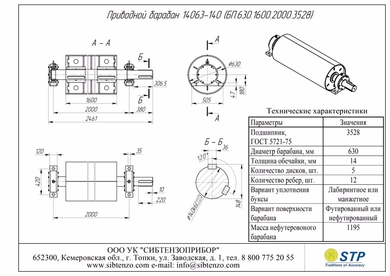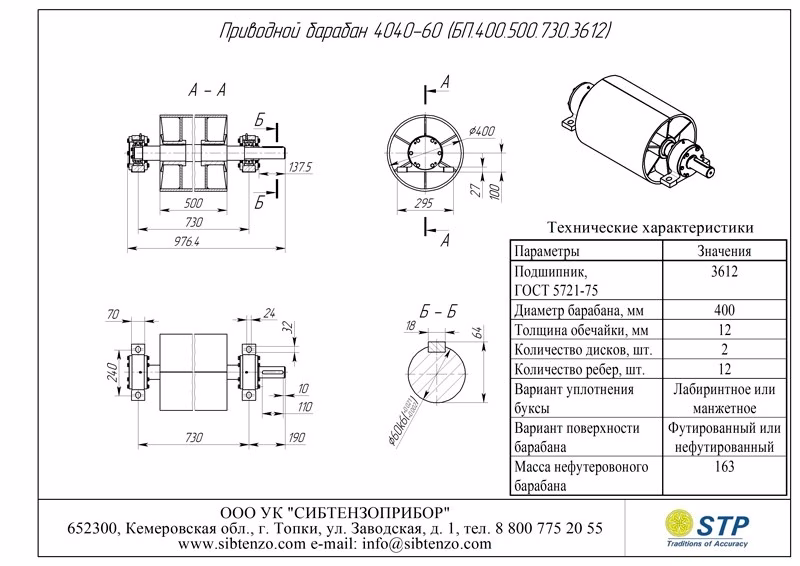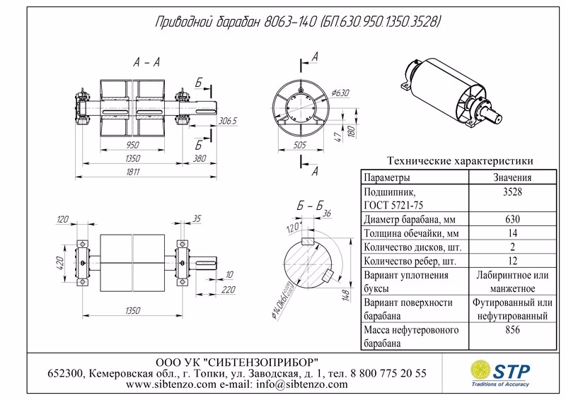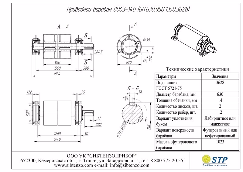 Шир. ленты В, мм Типоразмер приводного барабана Допуст. нагрузка Sб, даН Условное обозначение подшипника Размеры, мм Масса, кг Чертеж